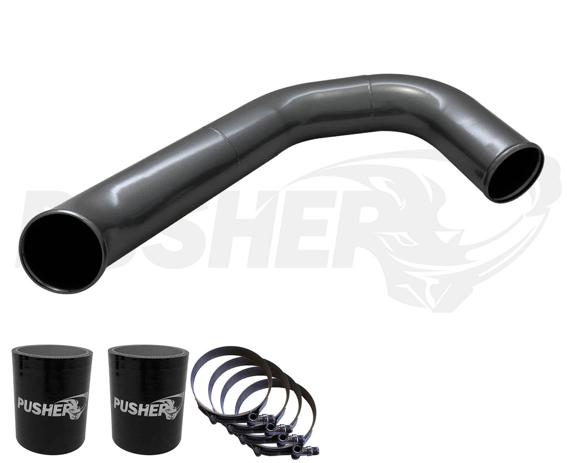 The Pusher 3" Passenger Side Intercooler Tube for the 2008-2010 6.4L Powerstroke trucks is an unobstructed passenger side charge tube that mates to the factory intake manifold or the smooth flowing Pusher intake manifold. Extensive design and testing has produced the best fitting and charge tube on the market that also includes heavy duty 5-ply silicone couplers and stainless steel t-bolt clamps. This charge tube offers an 18% gain in flow over the stock crushed tube and utilizes external beaded tube ends instead of the inadequate and restrictive internal bead design on the factory charge tube.Results include quicker turbo spool, lower EGT's, and less over all strain on your engine. Additional Powdercoat options available.